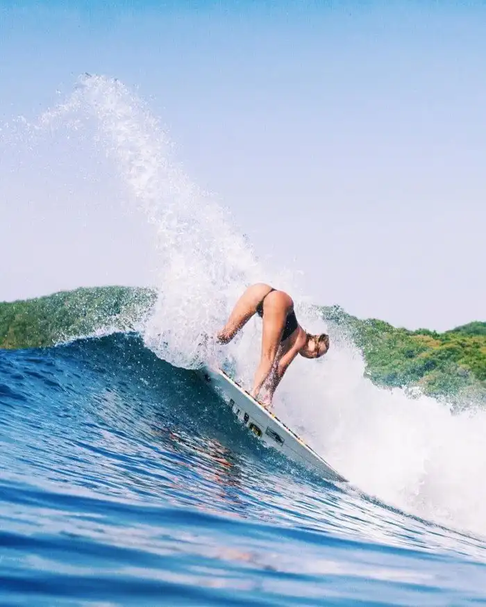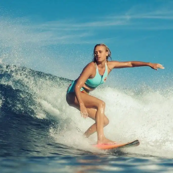 22-летняя австралийка Элли-Джин Коффи — профессиональный серфер. Пару лет назад она входила в топ-20 мирового рейтинга. Но не будем утомлять вас подробностями ее карьеры и перейдем сразу к главному. Ведь и в инстаграме Элли-Джин нет ничего лишнего: только море, пляжи, купальники… Добавим лишь, что у девушки есть три родные сестры и они тоже частенько появляются на фото.
