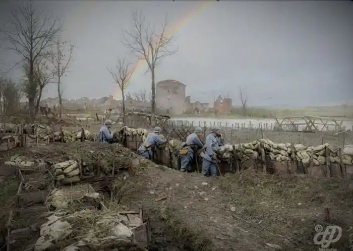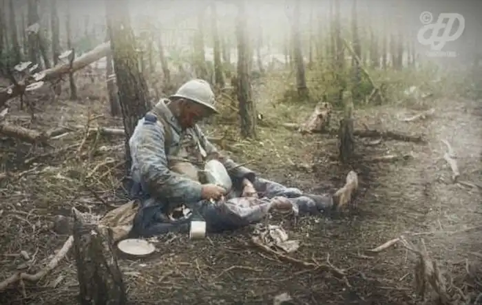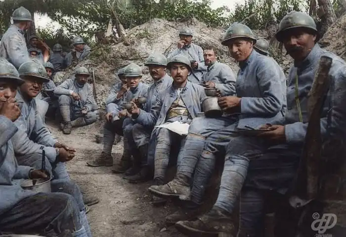 Художник Фредерик Дюрье (Frederic Duriez) известен своими работами по окрашиванию старых черно-белых фотографий. Благодаря краскам безликие снимки обретают вторую жизнь и более подробно доносят до нас запечатленные на них события. Далее мы хотим показать вам серию снимков, посвященных Первой мировой войне. На них запечатлена повседневная жизнь французских солдат, которая приобретает совершенно новый смысл, когда все здесь изображено в цвете. Аккуратно, фото не для впечатлительных.