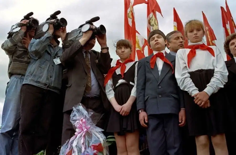 Пионеры во время выступления лидера коммунистов Геннадия Зюганова в центре Красноярка,1996 год.
