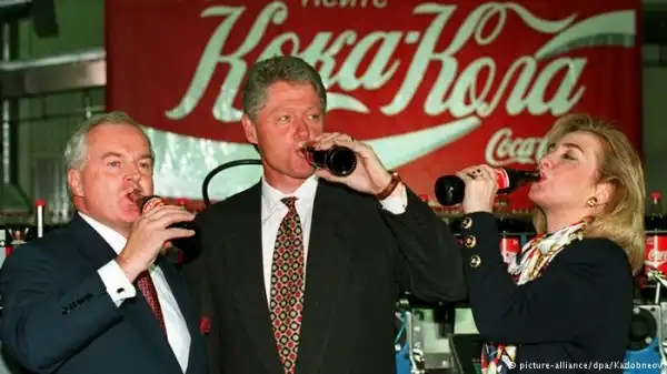 11 мая 1995 года раскрутке бренда Coca-cola вместе с главой российского представительства компании решили посодействовать, приехавшие в Москву, президент США Билл Клинтон и его жена Хиллари.