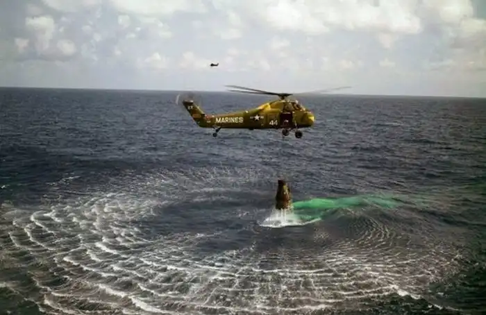 Подъем капсулы с астронавтом Аланом Шепардом после приземления в Атлантическом океане