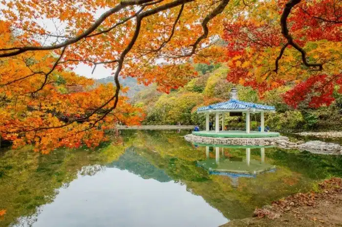 Парк скрывается в горах Нэджангсан к югу от Сеула. Особенно красив он осенью.