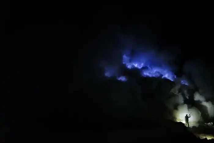 Эти фото были сделаны журналистом Филиппо Валоти-Алебарди в кратере индонезийского вулкана Иджен, где добывают серу. Вулкан высотой 2,6 километра с шириной кратера почти в 1 километр находится на острове Ява, и способ добычи серы здесь не меняется вот уже в течение десятилетий. Каждый день самое большое в мире сернистое озеро посещает множество туристов, при этом производственный процесс не останавливается. Поджигая серный газ и метан, который горит ночью, и тушится ранним утром, горняки получают жидкую серу, которая потом затвердевает и относится в пункт взвешивания. За 8-часовую смену горняки получают 10 долларов США, а после 50 дней в кратере им необходим отдых в течение 50 дней вне кратера. Примерно столько же зарабатывают носильщики, которые носят застывшую серу корзинами, причем до пункта взвешивания им приходится добираться пешком (200 метров вверх по кратеру и потом еще 2 км вниз по склону вулкана).
