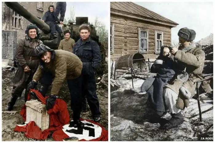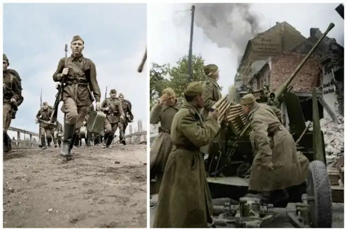 Американские и советские солдаты в Германии, май 1945-го