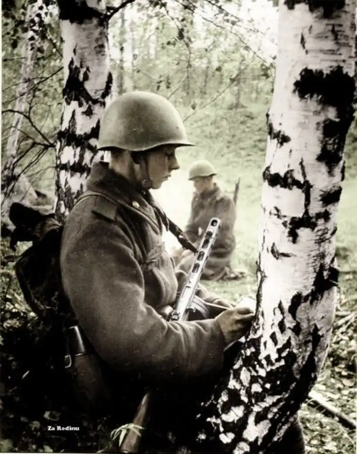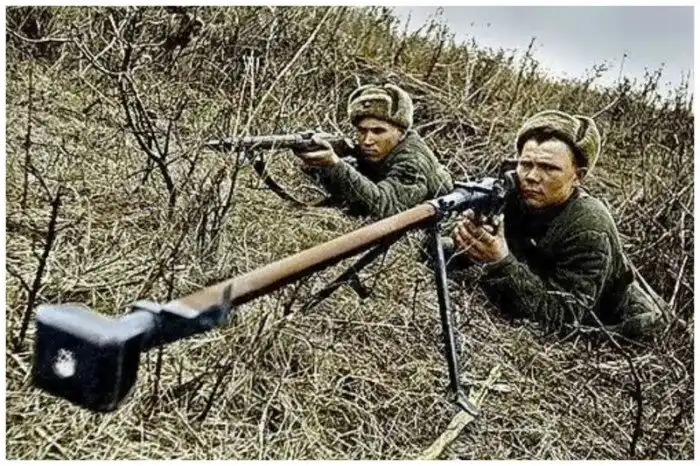 Советский морской снайпер Рад Аюшеев 63-й дивизии морской пехоты, 1942 г.
