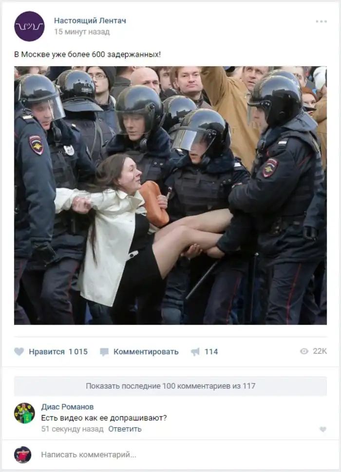 Митинг на Тверской в Москве стал самыми крупным с 1993 года по количеству задержаний. По официальным данным, в автозаки попали 600 человек. Правозащитники утверждают, что задержанных больше тысячи.