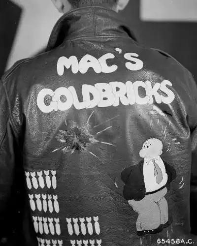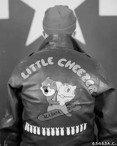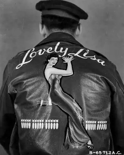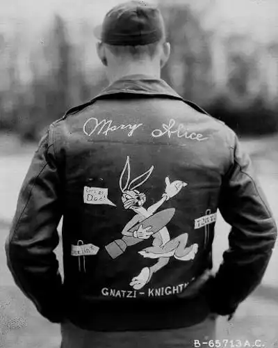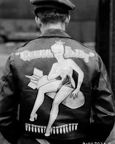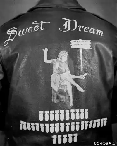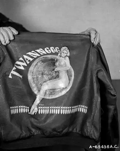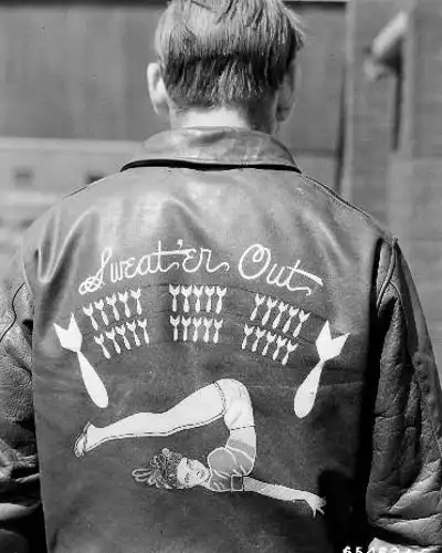 С образом американских пилотов Второй мировой войны ассоциируются черные кожаные куртки, которые пилоты зачастую украшали рисункам. Куртки модели А-2 появились в 1931 году и стали выдаваться в качестве стандартной амуниции пилотам и штурманам. На некоторых куртках можно было встретить целые картины с изображением героев мультфильмов, девушек и бомб, означавших количество боевых вылетов. С примерами некоторых из таких рисунков нас с вами познакомит данный пост.