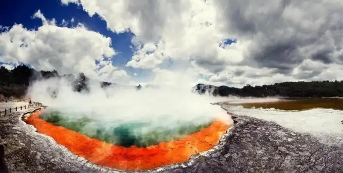 Вай-о-Тапу — одно из самых прекрасных, но мало известных природных чудес Новой Зеландии. Отправившись на трехчасовую прогулку, каждый поворот представляет новое чудо – от гейзеров до невероятно цветных озер. Есть также грязевые бассейны и популярный Бассейн Шампанского — вероятно, самая известная привлекательность этих мест, со своим ошеломляющим внешним кольцом оранжевого цвета.