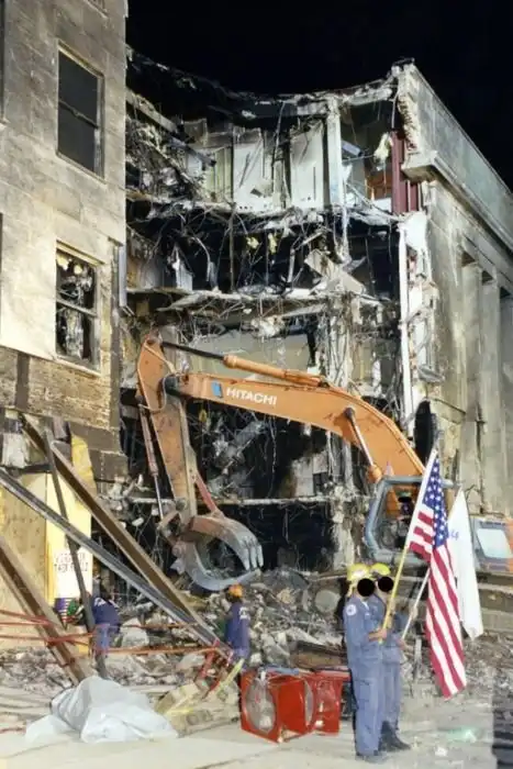 Федеральное бюро расследований (ФБР) США обнародовало снимки, которые были сделаны 11 сентября 2001 года, спустя несколько часов после того как в здание ведомства врезался самолет. На фотографиях запечатлены разрушения, полученные зданием, видны обломки самолета и работающие спасатели. В результате того теракта погибло 189 сотрудников Пентагона.