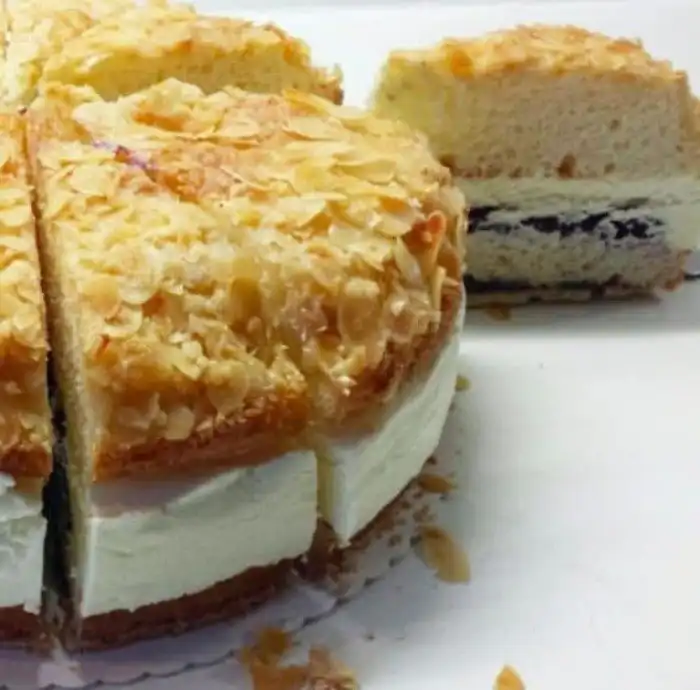 "Биненштих" - бисквитный пирог с ванильным пудингом.