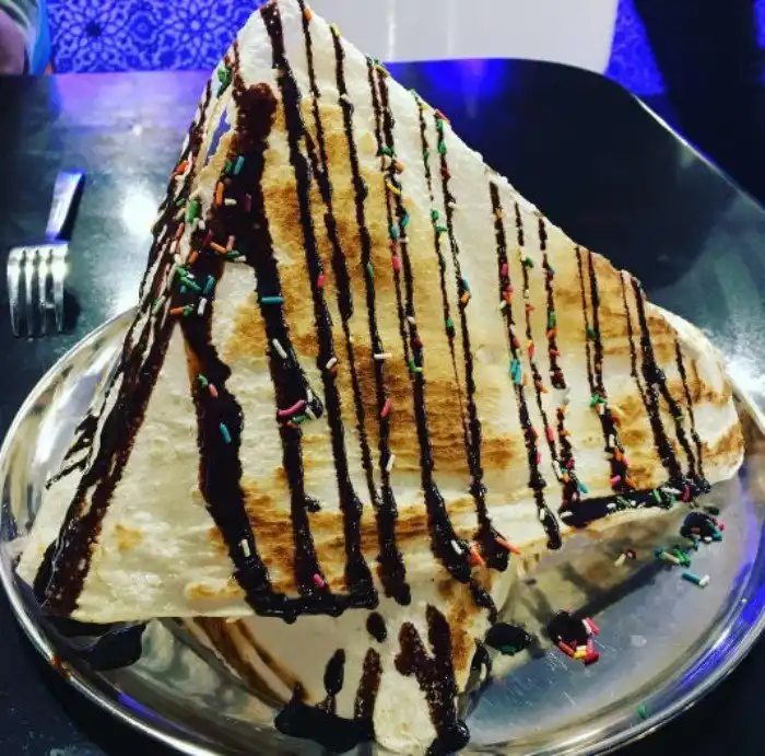 "Тиссью прата" - треугольники из лепешки, залитые шоколадным соусом.