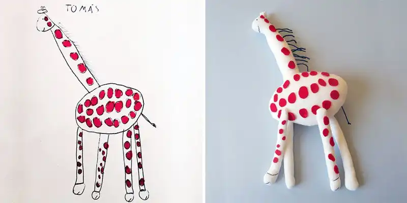 Вильма Тралди - итальянка. Она живет и работает в Марселе. Вильма - мама и художница, и она просто обожает детские рисунки. "Меня завораживает смелость в использовании цветов, свобода воображения и восприятие реальности без барьеров", - говорит она. Ее новая серия работ - игрушки, сшитые по детским рисункам. Она шьет из тканей фигуры, нарисованные детьми, и ее игрушки получаются оригинальными и нестандартными!