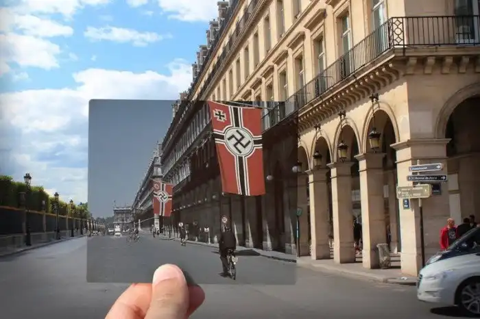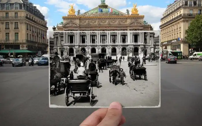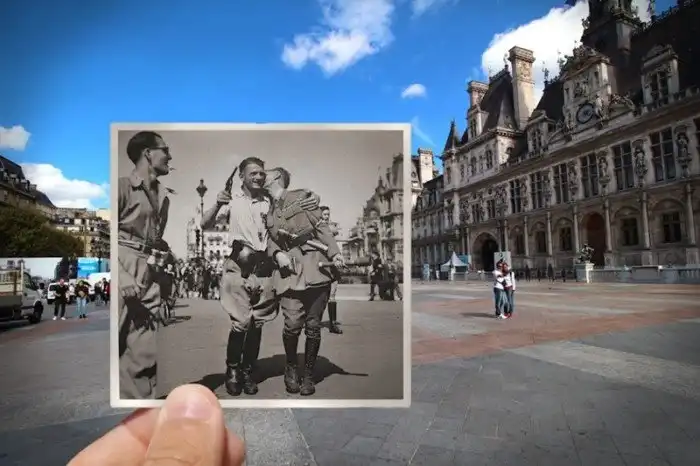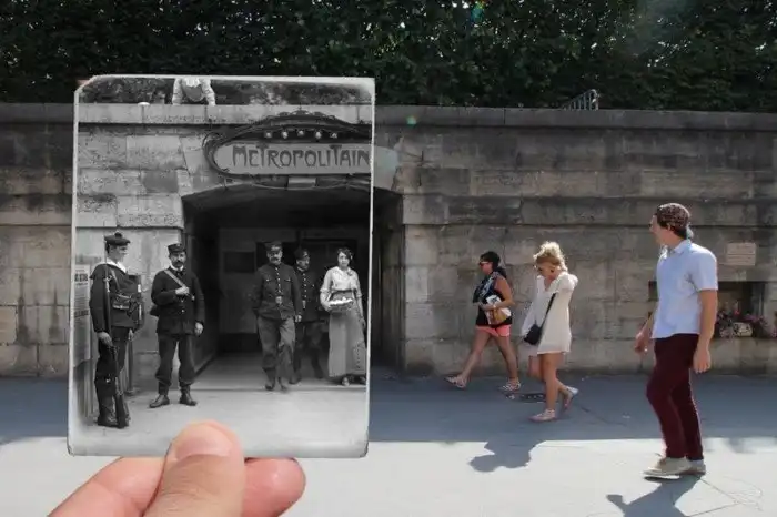 В результате поисков винтажных фотографий, Жюльен выбрал 80 снимков и наложил их на современные улицы Парижа. Винтажные снимки смогли охватить период с 1871 по 1968 года.