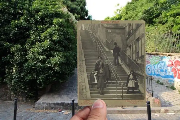 Идея подобного проекта зародилась летом 2015 года, когда Жюльен Кнез прогуливался по Парижу. Тогда Жюльен решил найти винтажные фотографии в интернете и запечатлеть эти места в настоящем времени. Получилось достаточно интересно.