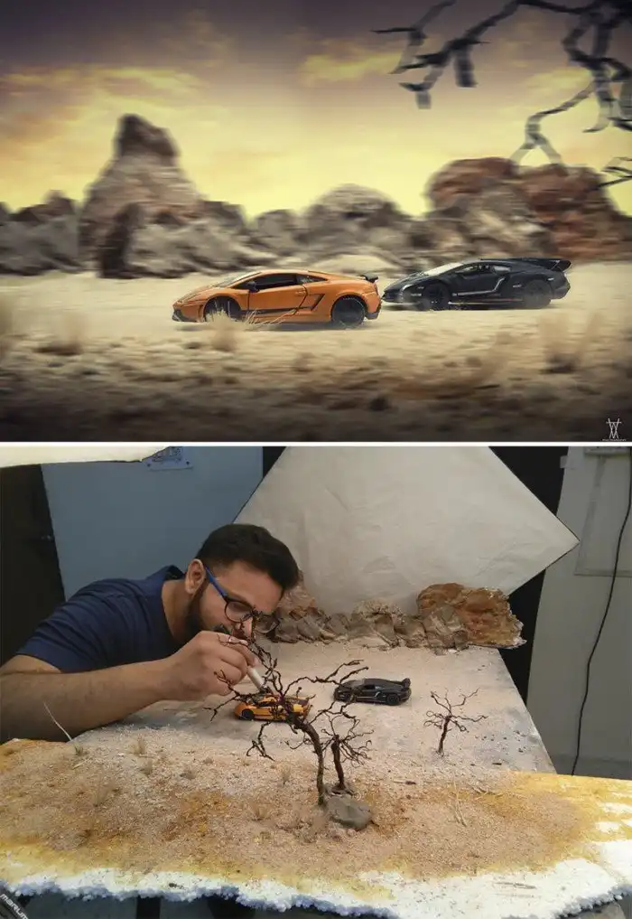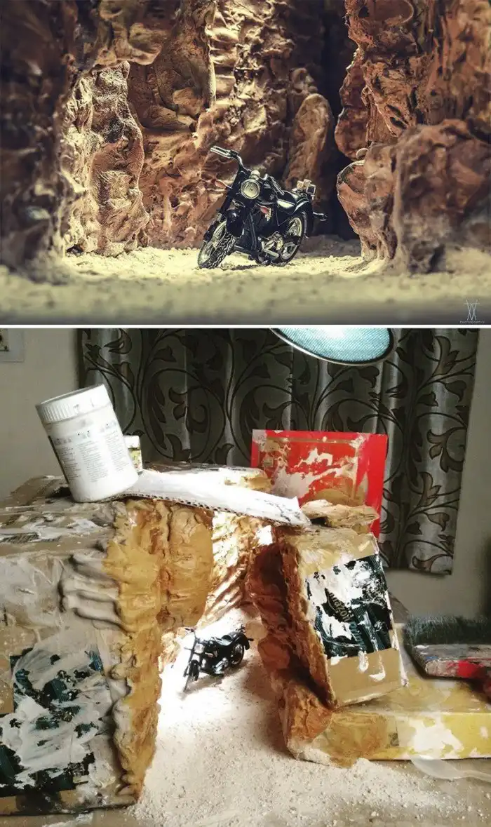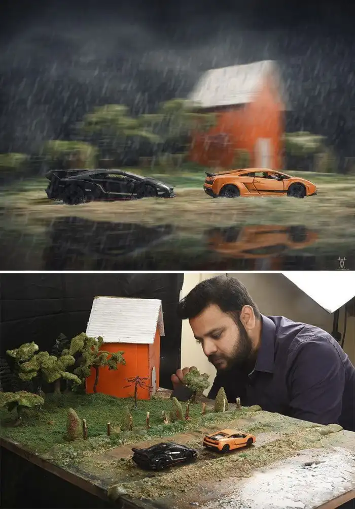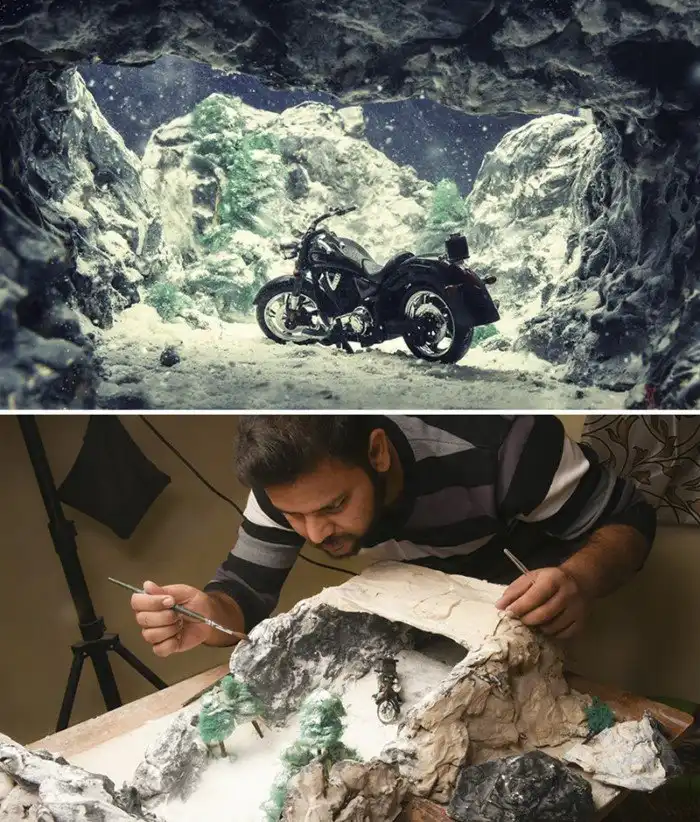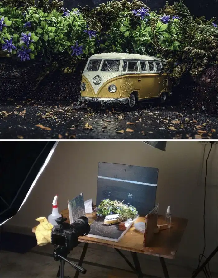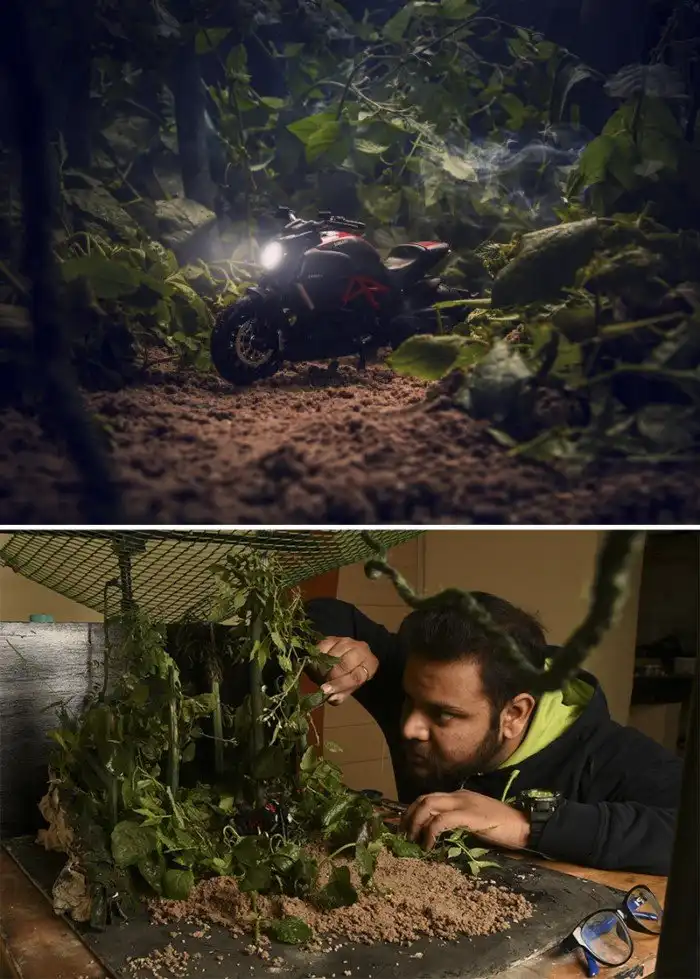 Индийский фотограф Ватсал Катариа специализируется на коммерческом натюрморте, но и с удовольствием работает над творческими и концептуальными фотосессиями. С помощью миниатюрных предметов ему удается оживить любую свою фантазию, при этом результат выглядит реалистично. Катариа не тратит больших средств на реквизиты и диорамы, а мастерит их из подручных материалов.