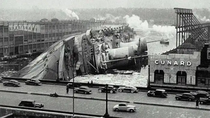 Крушение трансатлантического лайнера «Нормандия» у пирса в Нью—Йорке