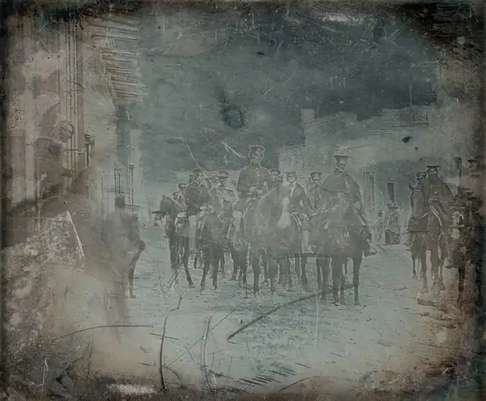 Старейший в мире снимок войны: генерал Вул со своими офицерами на ул. Кайе Реал города Салтийо (Saltillo) в Мексике