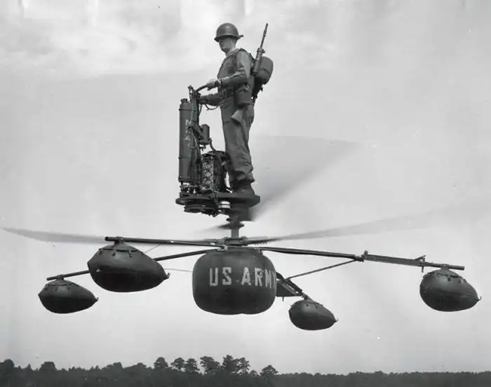Экспериментальный аэроцикл Де Лакнера в Форте Юстис (Eustis), штат Виргиния, США, 1956.