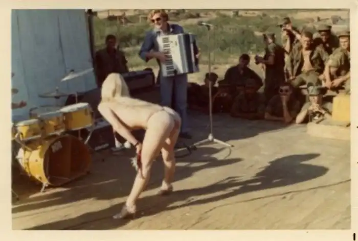 Колонна советских солдат в сопровождении 2-х Ми-24П