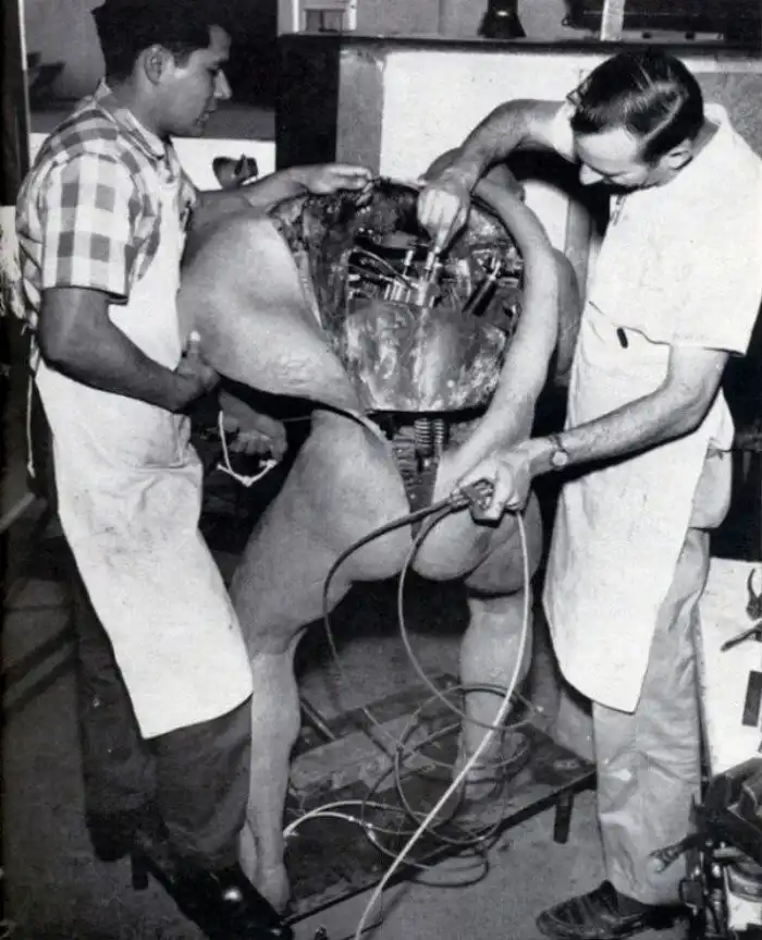 Ремонт механического пещерного человека. Он входил в часть экспозиции на выставке 1963 года в Нью-Йорке в павильоне Форда.