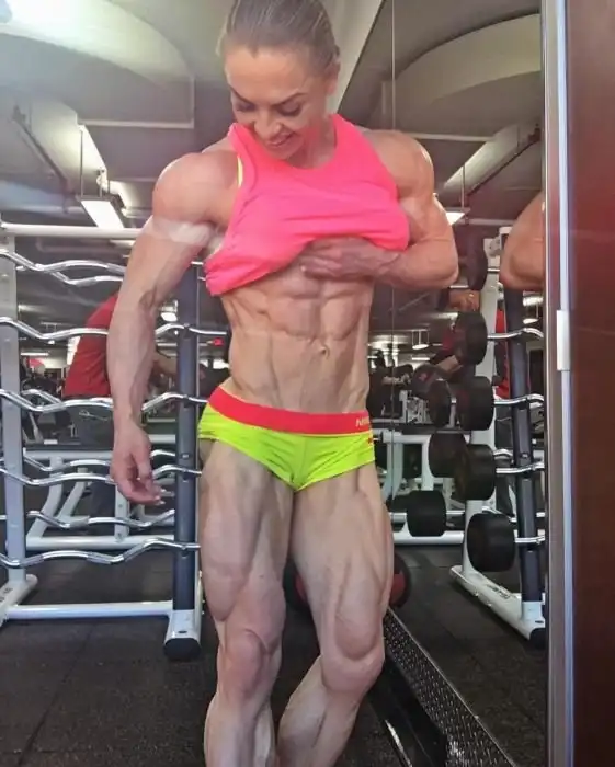 Перед вами 35-летняя поклонница бодибилдинга Элеонора Добрынина (Eleonora Dobrinina), проживающая в канадском городе Торонто. Спортсменка известна очень низким содержанием жира и невероятно рельефным телом, при этом сама она заявляет, что добилась такой формы без использования фармакологии. Смотрим и оцениваем.