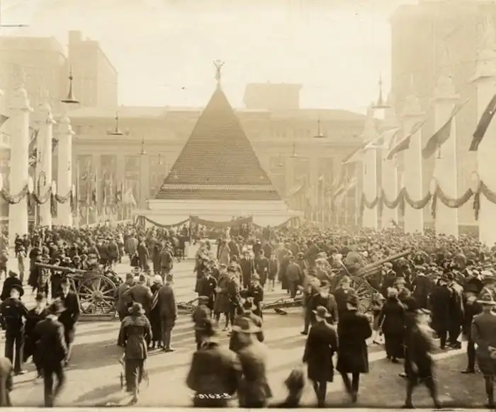 Первая мировая, пирамида из трофейных немецких касок