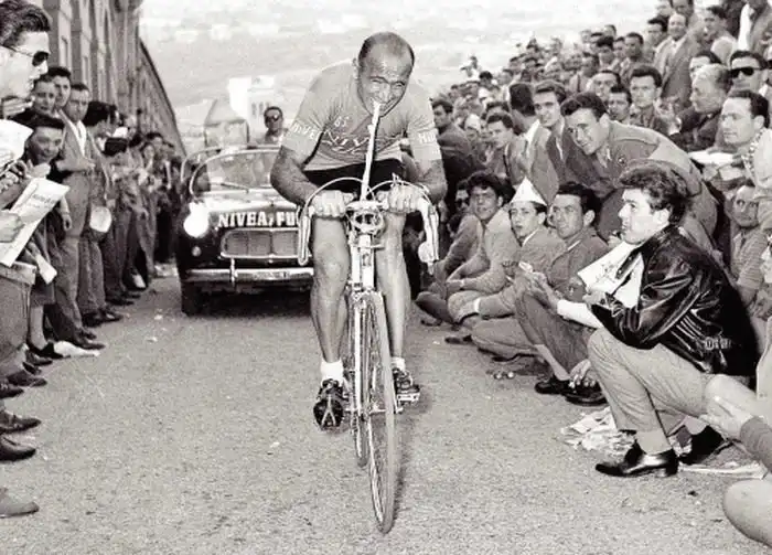 В 1956 году во время Джиро д’Италия велогонщик Фиоренцо Магни (Fiorenzo Magni) на двенадцатом этапе падает и ломает левую ключицу. Отказывается от гипса и перевязанный продолжает гонку. Механик делает ему устройство, с помощью которого он может поддерживать руль и переключать передачи. На шестнадцатом этапе он опять падает и ломает плечевую кость. Теряет сознание от боли, но после оказания медицинской помощи продолжает гонку, состоящую из 23 этапов. На горных спусках не может тормозить левой рукой в подъёмах вместо больной руки держась зубами за трубку, прикреплённую к рулю. Исторический 20–й этап, проходивший в ужасных погодных условиях, перевернул положение: Шарли Голь с 24–й позиции поднялся на первую, Магни доводит гонку до конца и, что совсем невероятно, приходит вторым, уступив лидеру всего три с половиной минуты. Поднявшись в том сезоне на подиум трёх главных итальянских гонок (Милан — Сан–Ремо, Джиро д’Италия, Джиро ди Ломбардия), в его концовке Фиоренцо завершил карьеру трехкратным победителем Джиро, Тура Фландрии и национального чемпионата Италии, 7 побед на этапах Тур де Франс.