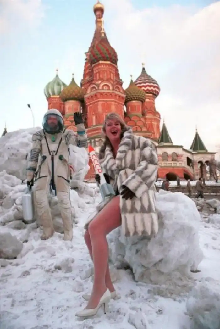 Съемки модели для мужского журнала «Андрей» на Красной площади, 1994 год, Москва