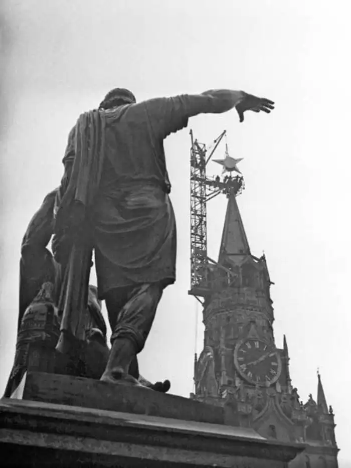 Установка звезды на шпиль Спасской башни Московского кремля, 1935 год, Москва