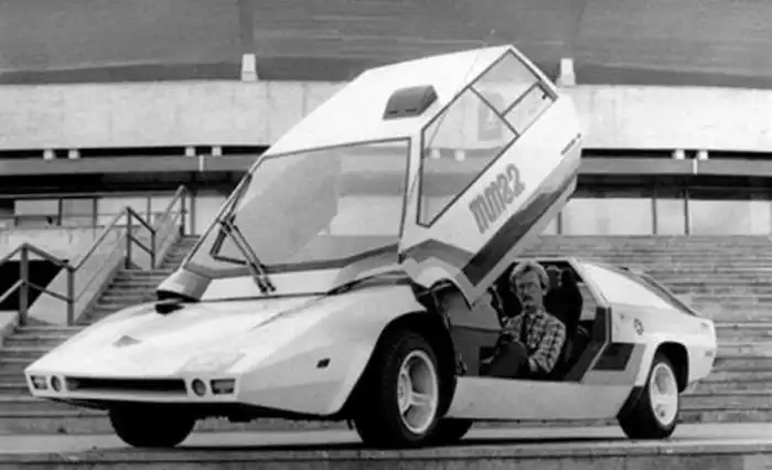 Александр Кулыгин в созданном им автомобиле «Панголина», 1982 год, Москва