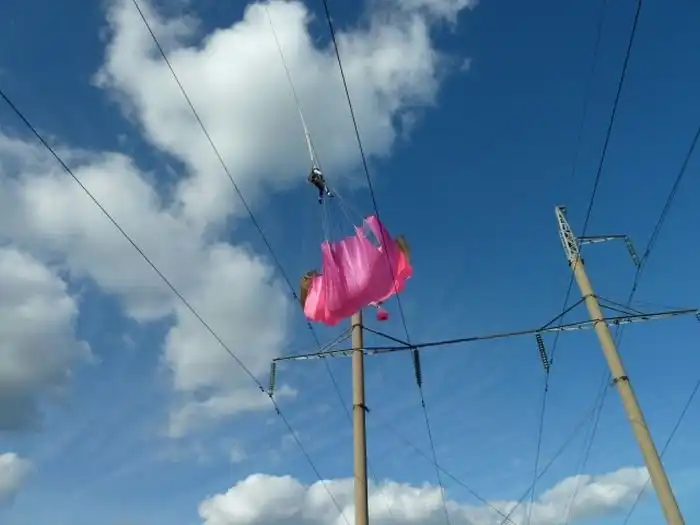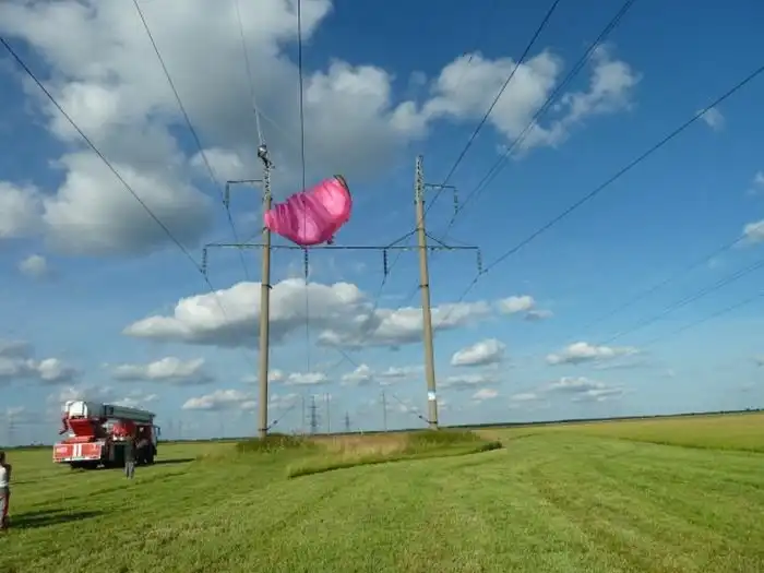 Девушка-парашютистка не рассчитала место приземления и очутилась на линии электропередач напряжением 220 кВ. Сама она оказалась невероятно везучей, так как повисла на грозовом тросе. Спустя немногим более часа парашютистку спустили на землю и теперь у нее появилась дата второго Дня рождения.