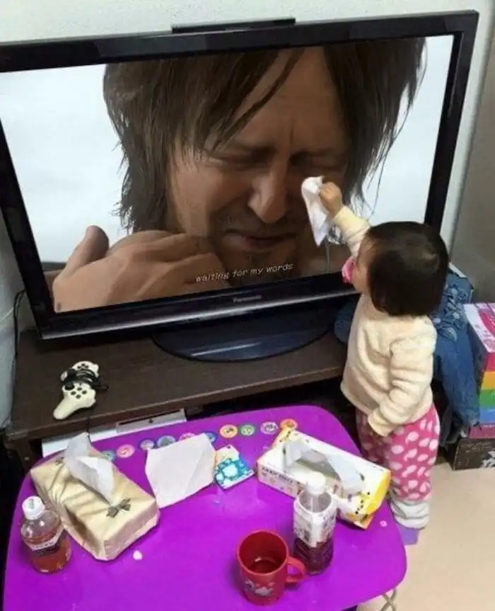 Малышка пытается вытереть слезы плачущему на экране актеру Норману Ридусу