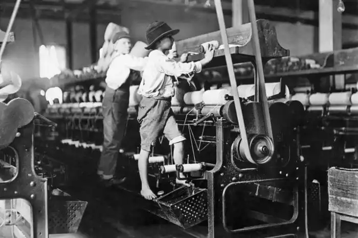 Юная работница возле хлопкопрядильной машины, 1908.