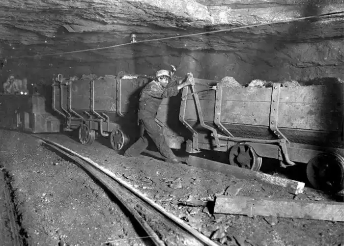 Гэри, Западная Вирджиния. Мальчик ставит на тормоз вагонетку. Рабочий день таких детей на шахте составлял 10 часов.