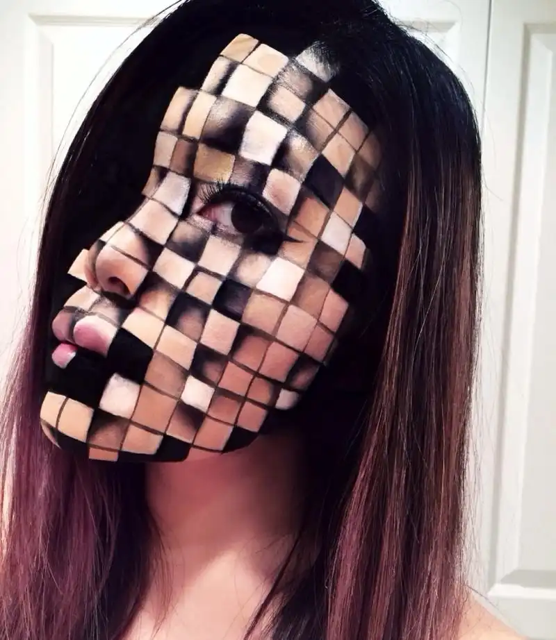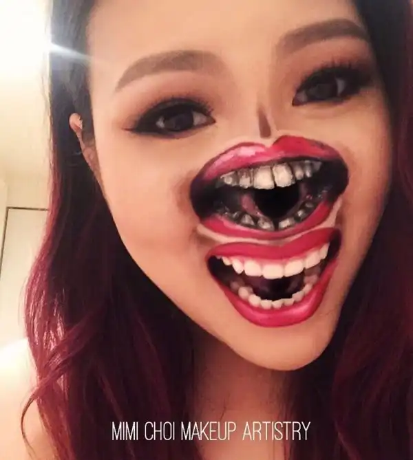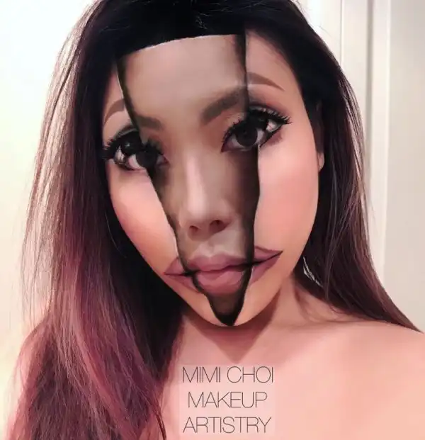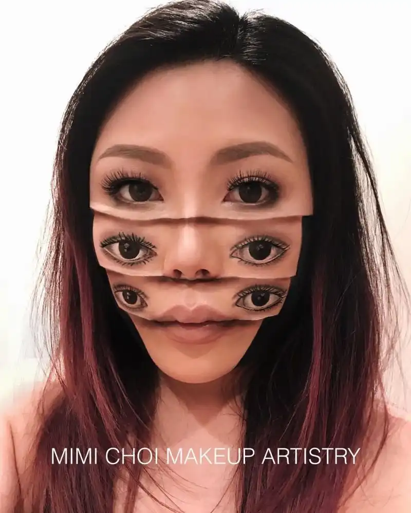 31-летняя визажист Мими Чой из Ванкувера, Канада, часами сидит возле зеркала, создавая на своем лице ошеломляющие оптические иллюзии. Работы Чой принесли ей похвалу миллионов людей и более 140 000 подписчиков в Instagram. Тем не менее, Мими часто подозревают в использовании Photoshop.