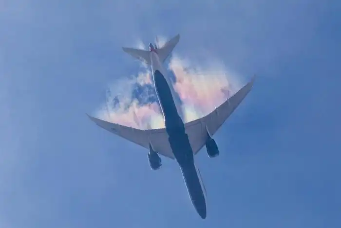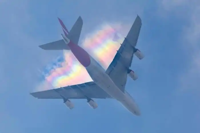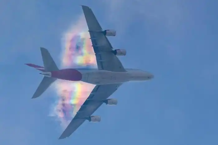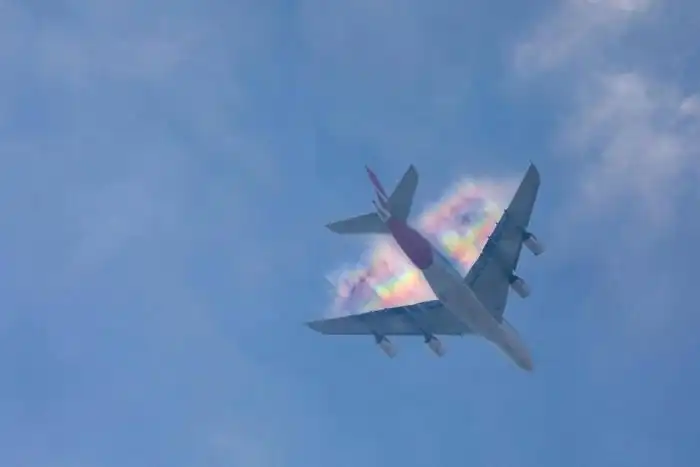 Глядя на эти фото, не сразу понимаешь, что здесь изображено, поэтому они требуют некоторых объяснений. Это редкая радуга, которую заметили над самолетом, пролетающим над южной частью Лондона. Такое явление возникает крайне редко и зависит от множества факторов, в том числе и от самого самолета, а также от уровня влажности воздуха и преломления света. В общем, хватит слов, давайте наслаждаться прекрасным зрелищем.