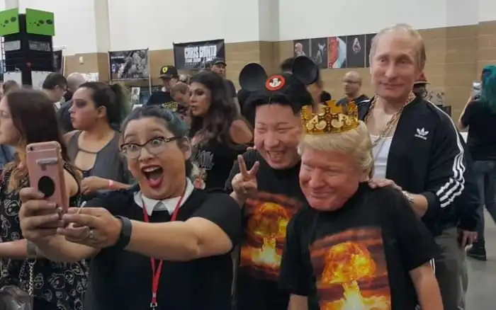 Дебютировавший в прошлом году на выставке Monsterpalooza американский художник Лэндон Мейер (Landon Meier) из Денвера в этом году решил напомнить нам о себе тремя гиперреалистичными масками трех влиятельных политиков. Он представил маски с лицами Владимира Путина, Дональда Трампа и Ким Чен Ына. Только взгляните на то, как реалистично выглядят маски Мейера.
