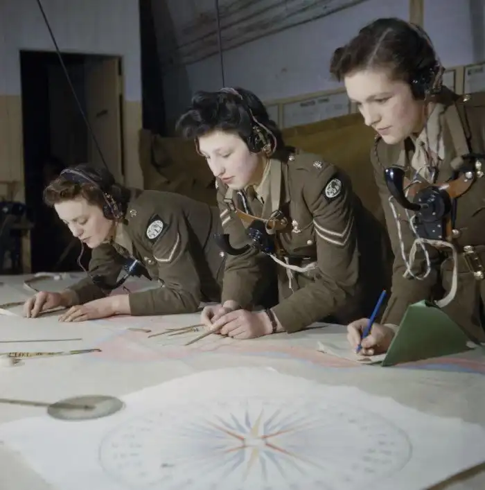 Девушки-картографы из вспомогательных частей за работой в штаб-квартире частей береговой артиллерии в Дувре, декабрь 1942 года. Вспомогательные женские части были сформированы еще в сентябре 1938 года, объединив женские добровольческие санитарные части, сотрудниц служб неотложной помощи и королевский женский батальон.