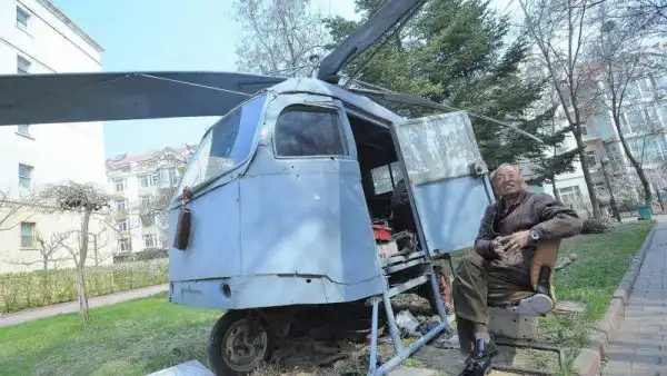 80-летний Гу из китайской провинции Ляонин потратил 10 лет и 60 000 юаней (8 700 долларов) на строительство и усовершенствование своего вертолета. Поскольку пенсионер получил только начальное школьное образование и мало что знал об авиации, ему пришлось обращаться за помощью к экспертам. Теперь у Гу осталась одна мечта - подняться на своем творении в небо.