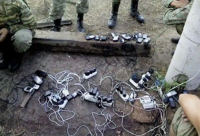 Даже в современной армии розетка в казарме является большой роскошью, однако у каждого военнослужащего есть мобильный телефон, который нуждается в зарядке. Далее предлагаем взглянуть на то, как выглядит процесс зарядки мобильных телефонов, когда их количество многократно превышает количество розеток.