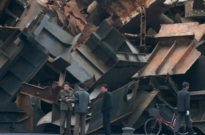 Мост, разрушенный во время Корейской войны на реке Ялу в Северной Корее, 26 мая 2009 (Фото Peter Parks):