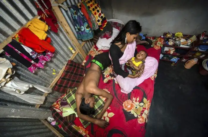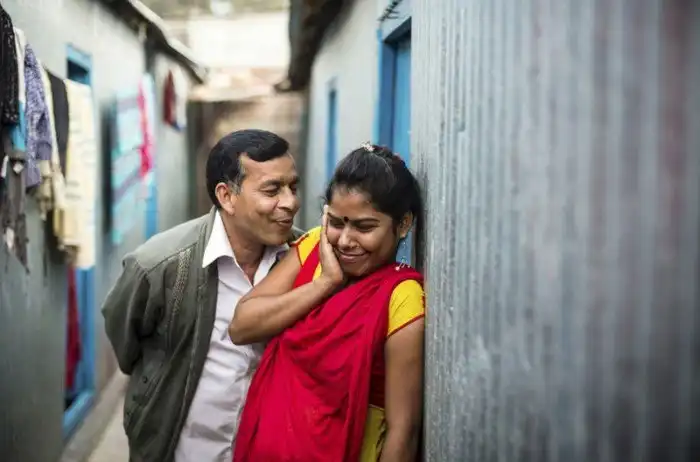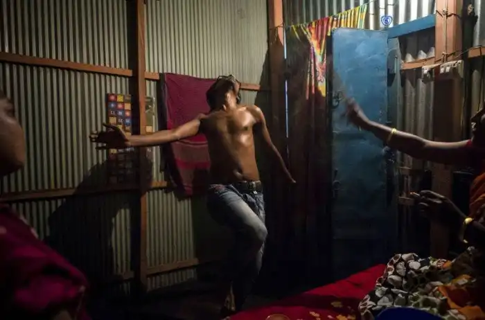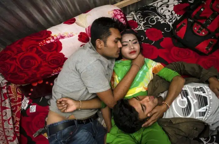 На фото: Каджол с клиентом. Она думает, что ей 17 лет, но точный возраст не знает. Была замужем в течение девяти лет, а потом тетя продала ее в бордель «Кандапара». Родив сына Мехеда, через две недели девушка уже была вынуждена снова начать работать