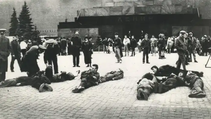 Активисты движения «Э.Т.И.» на акции «Э.Т.И.-текст», известной в народе как «х*й на Красной площади»