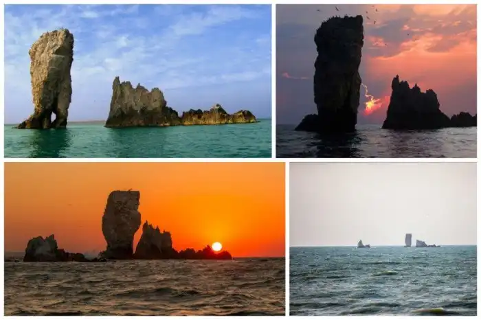 Это четыре скалы, которые находятся в 4 километрах от береговой линии. Каждая из скал имеет труднопроизносимые названия — Элькен-Кая (высота — 20 метров), Каравия, Петра-Каравия, Эльчен-Кая.