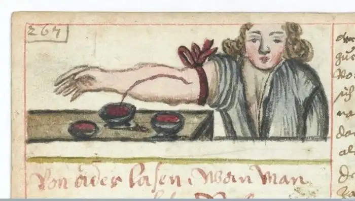 В древние времена лекари полагали, что для поддержания здоровья кровь и другие жидкости организма должны находиться в балансе. Одним из излюбленных способов достижения такого баланса была процедура кровопускания и ее назначали почти по любому поводу вплоть до конца 18 века. А первые упоминания о кровопускании датируются 5 веком до н. э. и найдены в трудах Гиппократа, который советовал пускать пациенту кровь для "очищения" тела. Он говорил, что это работает так же, как женская менструация - "все ненужное и плохое из женщины выходит". Значит, и другие болезни можно лечить похожим образом. Сегодня кровопускание считается псевдонаукой и его неэффективность давно доказана.