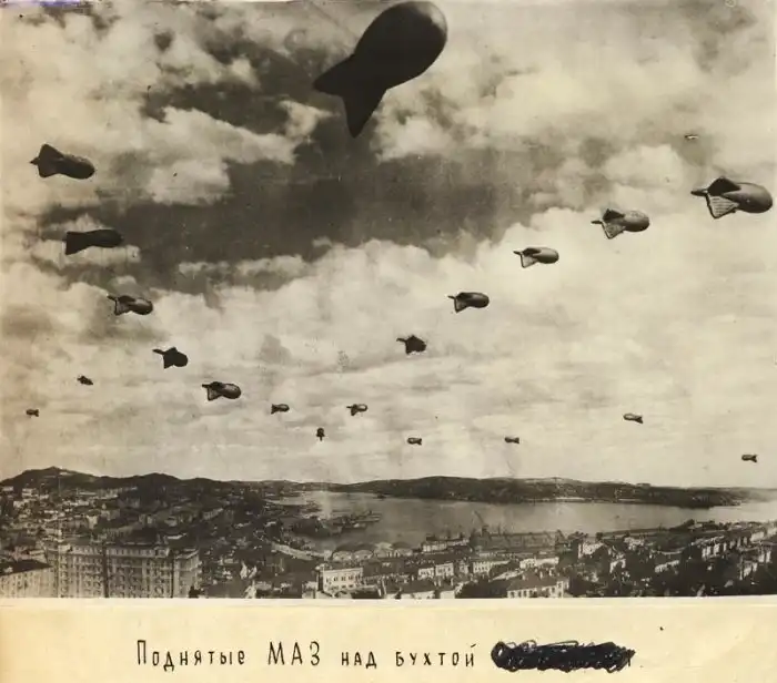 Поднятые МАЗ над бухтой Золотой Рог, 1945 год.