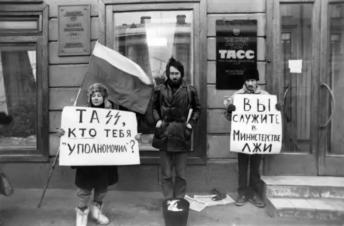 Пикет у ленинградского отделения ТАСС, август 1991 года.