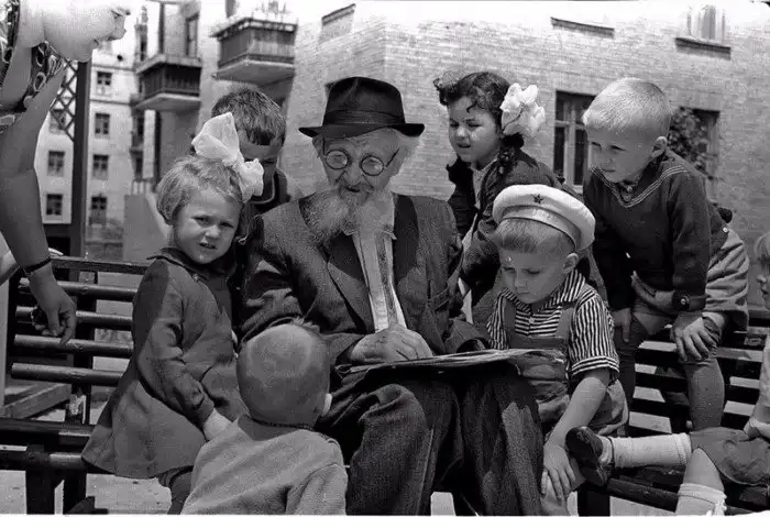 с 4-летними обитателями дома № 170 по ул. Красноармейской Витей Самойленко, Лёней Полищуком, Людой Эпштейн, Борей Токарем и Серёжей Трубецким, Киев, июнь 1959 года.