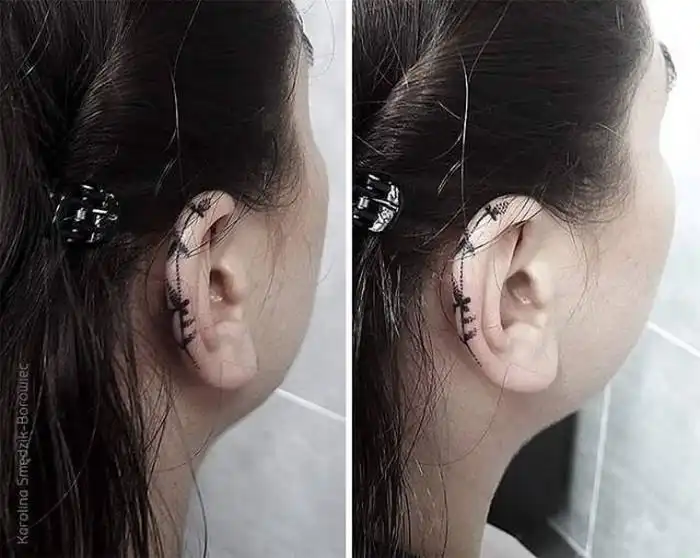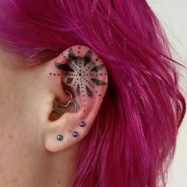 Последним трендом в украшении ушей стали татуировки. Разнообразные узоры, изображения, орнаменты, символы и прочие рисунки заменили обычные серьги, и создают по-настоящему неповторимый образ. Примеры подобных татуировок ждут вас далее.