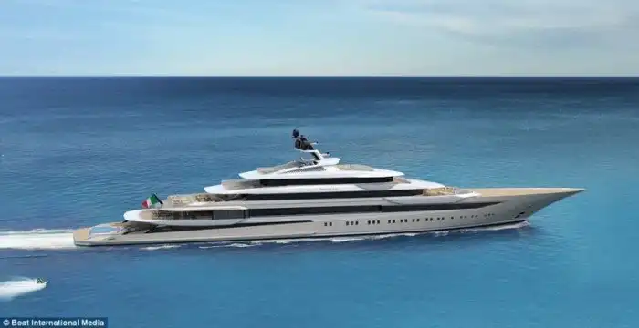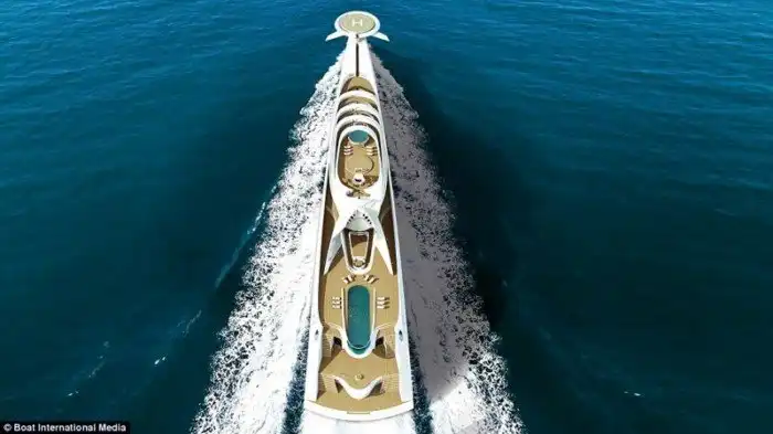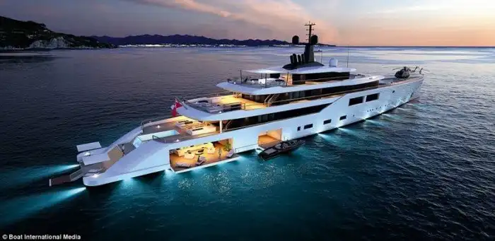 L''Amage - огромная яхта для будущих супербогачей! Здесь имеется 14 гостевых кают, где могут разместиться 28 человек, плюс личные апартаменты владельца и места для размещения 70 членов экипажа. Для увеселения гостей на борту есть коктейль-бар, танцпол, открытый и закрытый бассейны, а также обзорная палуба, откуда можно любоваться морскими видами.